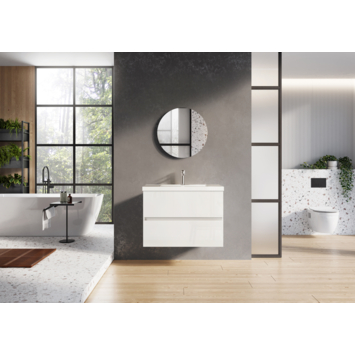 Dit Atlantic badkamermeubel Heron van 80 cm in hoogglans wit combineert een keramische wastafel met een strakke onderkast en brengt overzicht in je badkamer. Het compacte ontwerp is ideaal voor kleinere badkamers en biedt tegelijk voldoende opbergruimte dankzij de twee softclose-lades. Het meubel houdt toiletartikelen en handdoeken netjes uit het zicht, terwijl het heldere wit en de glanzende afwerking een tijdloze uitstraling geven. De wastafel is geïntegreerd en vormt één geheel met de onderkast, voor een verzorgd eindresultaat. Omdat de kraan apart verkrijgbaar is, kies je een uitvoering die perfect past bij je stijl. Zo creëer je een functionele badkamer met een strakke, moderne uitstraling.