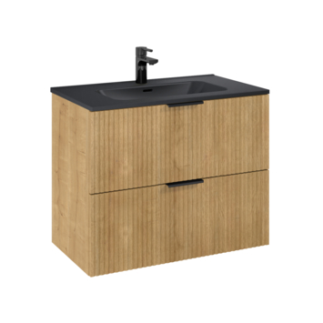 Atlantic badkamermeubel set Raff eik/zwart ribbelfront 80 x 45,2 x 63,5 cm