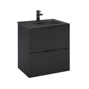 Creëer een strakke en moderne sfeer in je badkamer met het Atlantic badkamermeubel Raff zwart/zwart in 60 x 45,2 x 63,5 cm. De zwarte kast in ribbel design en de bijpassende zwarte wastafel zorgen samen voor een stoer geheel. Dankzij de geïntegreerde handgrepen oogt het meubel strak en minimalistisch, waardoor het perfect past in een eigentijdse badkamer.