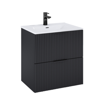 Maak jouw badkamer compleet met het Atlantic badkamermeubel Raff zwart/wit in 60 x 45,2 x 63,5 cm. Het contrast tussen de zwarte kast en de witte wastafel geeft direct een moderne en frisse uitstraling. Het ribbel design en de geïntegreerde handgrepen maken van dit meubel een stijlvolle blikvanger die past in elke badkamer.
