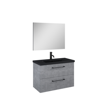 Atlantic Badkamermeubelset Sienna met Spiegel en Zwarte Wastafel - Beton 80
