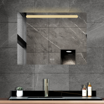 Transformeer je badkamer met de Atlantic Delon badkamerspiegel. Deze rechthoekige spiegel met een hoogte van 60 cm en een breedte van 80 cm is voorzien van LED-verlichting en een handige verwarmingsfunctie. De verlichting biedt helder en natuurlijk licht, ideaal voor precisiewerk zoals scheren en make-up aanbrengen. De geïntegreerde verwarming voorkomt condensvorming, zodat je spiegel altijd klaar is voor gebruik, zelfs na een warme douche. Het strakke, lijstloze ontwerp in chroom zorgt voor een moderne uitstraling die in elke badkamer past. De Delon spiegel is eenvoudig te installeren met het bijgeleverde bevestigingsmateriaal. Deze spiegel is perfect voor zowel beginners als ervaren doe-het-zelvers. Met de Atlantic Delon badkamerspiegel voeg je niet alleen een praktisch maar ook een stijlvol element toe aan je badkamer. Een slimme keuze voor een heldere start van je dag.
