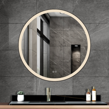Atlantic badkamerspiegel Janessa met verlichting rond ø 80 cm chroom - met zwarte aluminium rand