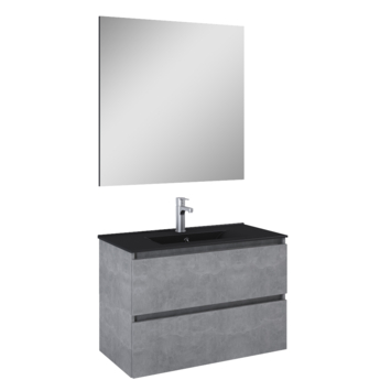 Atlantic Badmeubelset Heon met spiegel en zwarte wastafel 80cm Beton
