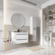 Badkamermeubelserie Stella is een eigentijds meubel. Door de mat witte wastafel, de mat zwart grepen en ronde spiegel is heeft dit meubel een chique uitstraling voor een betaalbare prijs.