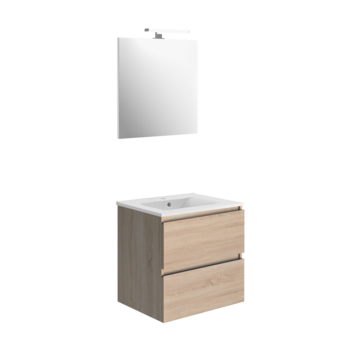 De Atlantic by Allibert badmeubelset Emma 60 cm 2 lades hout bestaat uit een hangende onderkast met wastafel, spiegel én verlichting. Dit meubel is vervaardigt uit gelamineerd MDF en bestaat in het wit en hout. Je kan ook kiezen tussen een onderkast met laden of deurtjes! Er zijn twee afmetingen verkrijgbaar, nl. 60 cm en 80 cm. Vergeet ook niet te kijken naar de brede bijpassende kolomkast voor dit meubel.