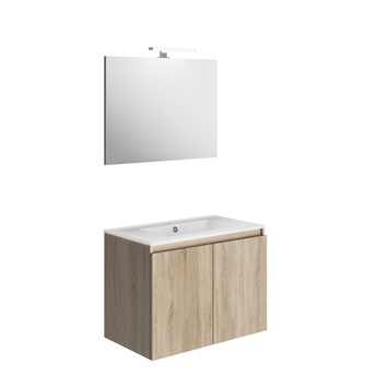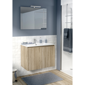 De Atlantic by Allibert badmeubelset Emma 80 cm 2 deurs hout bestaat uit een hangende onderkast met wastafel, spiegel én verlichting. Dit meubel is vervaardigt uit gelamineerd MDF en bestaat in het wit en hout. Je kan ook kiezen tussen een onderkast met laden of deurtjes! Er zijn twee afmetingen verkrijgbaar, nl. 60 cm en 80 cm. Vergeet ook niet te kijken naar de brede bijpassende kolomkast voor dit meubel.