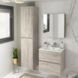 De DONNA badkamermeubel-set met een spiegelkast geeft een modern tintje aan uw badkamer en brengt u extra opbergruimte.