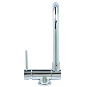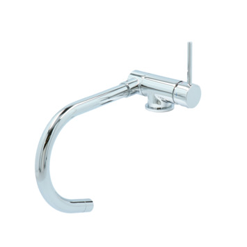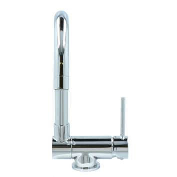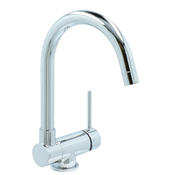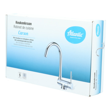 De Atlantic Carson éénhendel inklapbare keukenkraan Chroom heeft een eigentijds ontwerp met de elegante hoge ronde C-vormige uitloop. Met de glanzend chromen afwerking past deze kraan in elk modern keukeninterieur. Wat deze kraan uniek maakt, is de inklapbare uitloop. Dat maakt het mogelijk om een kraan met hoge uitloop voor een naar binnen draaiend keukenraam te plaatsen. Door de kraan 90° omlaag te klappen opent het raam zonder obstakels. De éénhendelbediening zorgt voor een eenvoudigere menging van koud en warm water. De decoratieve hoge uitloop van maar liefst 30 cm in combinatie met de 360° draaibaarheid van de kraan geeft veel ruimte in de gootsteen. Dat is handig bij het vullen van grote pannen of emmers. Bovendien zorgen de keramische schijven voor een soepele en nauwkeurige draaiing en deze vergen nauwelijks onderhoud. Het beste wordt de kraan gereinigd met alleen water en een zachte doek. Kalk is makkelijk met de hand van de antikalkperlator af te vegen. Reiniging en onderhoud kost dus weinig tijd.