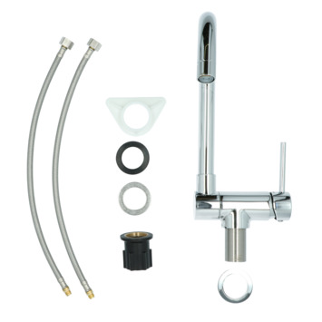 Besluit je deze kraan te kopen? De kraan is makkelijk te monteren met de 2 meegeleverde flexibele aansluitslangen, bevestigingsmateriaal en montagehandleiding. Gebruik voor het onderhoud en reiniging geen schurend, bijtend, azijnhoudend of agressief schoonmaakmiddel. Dat tast de buitenlaag aan. Op de kraan krijg je 5 jaar garantie.