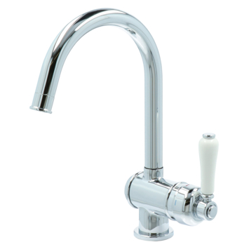 De Atlantic Charles éénhendel keukenkraan Chroom kenmerkt zich met een retro design met de klassieke handgreep en elegante rondingen, en heeft een mooie glanzende chromen afwerking. Een onmisbare aanvulling in elk klassiek of retro keukeninterieur. De éénhendelbediening zorgt voor een eenvoudigere menging van koud en warm water. De 360° draaibaarheid van de kraan geeft veel ruimte in de gootsteen. Bovendien zorgen de keramische schijven voor een soepele en nauwkeurige draaiing en deze vergen nauwelijks onderhoud. Het beste wordt de kraan gereinigd met alleen water en een zachte doek. Kalk is makkelijk met de hand van de antikalkperlator af te vegen. Meer is niet nodig!