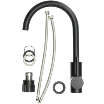 De Atlantic Colin éénhendel keukenkraan Zwart heeft een eigentijds ontwerp en kenmerkt zich met een robuuste uitstraling door zijn mat zwarte afwerking. Ook verkrijgbaar zijn chroom, RVS en messing. De éénhendelbediening zorgt voor een eenvoudigere menging van koud en warm water. De decoratieve hoge uitloop in combinatie met de 360° draaibaarheid van de kraan geeft veel ruimte in de gootsteen. Bovendien zorgen de keramische schijven voor een soepele en nauwkeurige draaiing en deze vergen nauwelijks onderhoud. Het beste wordt de kraan gereinigd met alleen water en een zachte doek. Kalk is makkelijk met de hand van de antikalkperlator af te vegen.