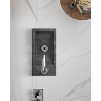 De Antalantic fonteinset Billy is gemaakt in natuursteen en is ideaal voor de kleine badkamer of toiletruimte. Door deze wasbak in een hoek te plaatsen kun je ruimte besparen, maar hij staat ook prima op een vlakke wand. De fonteinset komt met kraan, sifon, afvoerplug en het benodigde bevestigingsmateriaal. De kraan, sifon en afvoerplug hebben een stijlvolle RVS-kleurige buitenlaag. Bij dit model zit het kraangat, met kraan, aan de linkerkant van de wasbak. De Atlantic handenwasserset Billy natuursteen links 37,5x18,5x9,5 cm is eenvoudig te monteren en komt met 3 jaar garantie. Je kan deze fonteinset Billy in verschillende kleuren vinden op onze website of in de winkel!