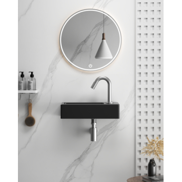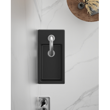 De Atlantic fonteinset Billy, vervaardigd uit zwart mat keramiek, is perfect voor de kleine badkamer of toiletruimte. Door de wasbak in een hoek te plaatsen, bespaar je ruimte, maar hij kan ook prima tegen een vlakke wand worden gemonteerd. De fonteinset wordt geleverd met een kraan, sifon, afvoerplug en al het benodigde bevestigingsmateriaal. De kraan, sifon en afvoerplug zijn stijlvol afgewerkt met een RVS-kleurige buitenlaag. Bij dit model bevindt het kraangat zich aan de rechtskant van de wasbak. De Atlantic handenwasserset Billy zwart mat keramiek rechts in de afmetingen 37,5x18,5x9,5 cm is eenvoudig te installeren en komt met drie jaar garantie. Je kan deze fonteinset Billy in verschillende kleuren vinden op onze website of in de winkel!