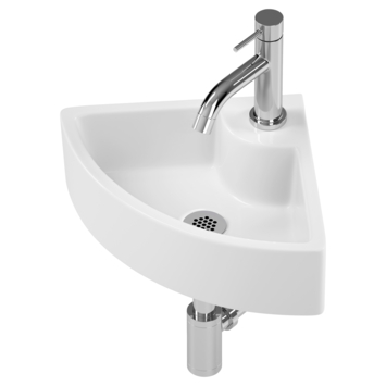 De Atlantic fonteinset Ozzy hoekmodel, vervaardigd in wit keramiek, is perfect voor de kleine badkamer of toiletruimte. De fonteinset wordt geleverd met een kraan, sifon, afvoerplug en al het benodigde bevestigingsmateriaal. De kraan, sifon en afvoerplug zijn stijlvol afgewerkt met een verchroomde buitenlaag. Bij dit model bevindt het kraangat zich in het midden van de wasbak. De Atlantic handenwasserset Ozzy hoekmodel wit keramiek in de afmetingen (bxdxh) 28x28x10 cm is eenvoudig te installeren en komt met drie jaar garantie.