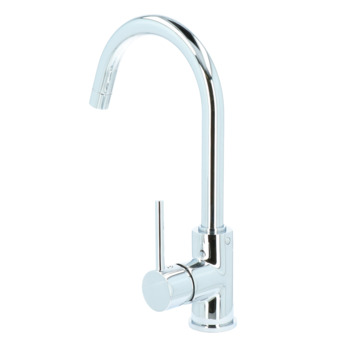 De Atlantic Jeremy éénhendel keukenkraan Chroom heeft met de C-vormige uitloop een rond elegant ontwerp en past met de prachtig glanzende chromen afwerking in ieder keukeninterieur. De keukenkraan Jeremy is ook verkijgbaar met uittrekbare sproeikop. De decoratieve hoge uitloop van maar liefst 32,7 cm in combinatie met de 360° draaibaarheid van de kraan geeft veel ruimte in de gootsteen. Dat maakt vullen van een grote pan of emmer eenvoudig. De éénhendelbediening zorgt voor een eenvoudige menging van koud en warm water. De keramische schijven in de kraan zorgen daarbij voor een soepele en nauwkeurige draaiing, bovendien vergen deze schijven nauwelijks onderhoud. De kraan wordt het beste gereinigd met alleen water en een zachte doek. Kalk is makkelijk met de hand van de antikalkperlator af te vegen. Meer is niet nodig!