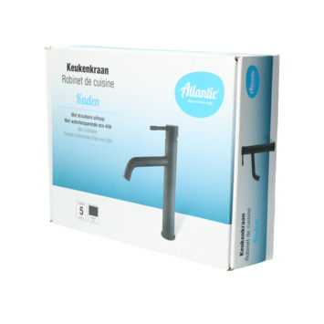 De Atlantic Kaden éénhendel keukenkraan Zwart heeft met de rechte hoge uitloop een hedendaags ontwerp en kenmerkt zich met een robuuste uitstraling door de mat zwarte afwerking. Perfect passend in een industrieel of landelijk keukeninterieur! Ook verkijgbaar is een uitvoering in chroom of RVS, daarmee kies je altijd de juiste kleur in jouw keuken. De éénhendelbediening zorgt voor een eenvoudigere menging van koud en warm water. De hoge uitloop op 16 cm in combinatie met de 360° draaibaarheid van de kraan geeft veel ruimte in de gootsteen. Dat maakt vullen van een grote pan of emmer eenvoudig. Bovendien zorgen de keramische schijven voor een soepele en nauwkeurige draaiing en deze vergen nauwelijks onderhoud. Het beste wordt de kraan gereinigd met alleen water en een zachte doek. Kalk is makkelijk met de hand van de antikalkperlator af te vegen.