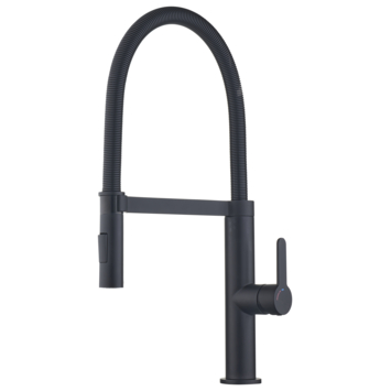 De mat zwarte afwerking geeft de kraan een luxe uitstraling en hij is ook gemakkelijk schoon te maken. Dankzij de draaibare uitloop kun je eenvoudig rondom de gootsteen werken. De uittrekbare mousseur maakt het mogelijk om zelfs de moeilijk bereikbare plekken in de gootsteen goed schoon te maken. Met de handige hendel kun je met één beweging de kraan aan- of uitzetten en snel van warm naar koud water schakelen.