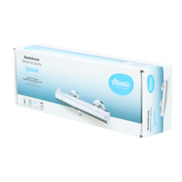 De Atlantic Landon thermostatische douchekraan Chroom 15 cm heeft een tijdloos recht ontwerp en past met de prachtig glanzende chromen afwerking in ieder badkamerinterieur. Deze douchekraan heeft een universele doucheuitloop waarop elke handdouche aansluitbaar is. Ook verkrijgbaar is de chromen Landon thermostatische badkraan. De thermostatische douchekraan zorgt dat het uitstromende water op een constante temperatuur blijft, ongeacht schommelingen in de waterdruk. Bovendien kan de gewenste watertemperatuur kan vooraf eenvoudig ingesteld worden. Douchen was niet eerder zo comfortabel! De keramische schijven maken het draaien van de knoppen soepel en nauwkeurig. Bovendien vergen deze schijven nauwelijks onderhoud. De kraan zelf wordt het beste gereinigd met slechts water en een zachte doek. Meer is niet nodig!