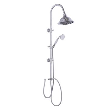 De Atlantic Brunswick regendoucheset heeft een in hoogte verstelbare handdouche, een vaste en een brede regendouche van 208mm. De vaste regendouche heeft een klassiek design.