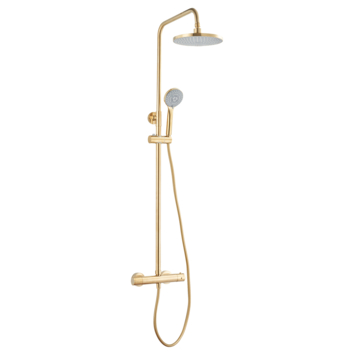Atlantic regendoucheset Asher met handdouche 3 standen en thermostaatkraan goud - - hartafstand kraan 15 cm