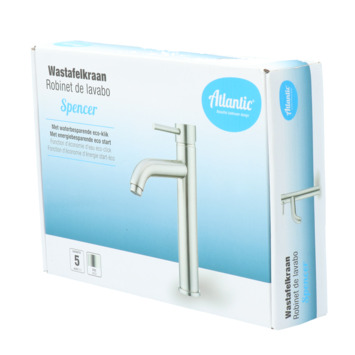 De Atlantic Spencer éénhendel wastafelkraan RVS heeft een tijdloos ontwerp en kenmerkt zich met een stoerdere uitstraling door zijn geborstelde RVS afwerking. Ook verkrijgbaar zijn uitvoeringen in mat zwart en chroom. De éénhendelbediening zorgt voor een eenvoudigere menging van koud en warm water. Daarbij zorgt de keramische schijf voor een soepele en nauwkeurige draaiing. Bovendien vergt deze nauwelijks onderhoud. Het beste wordt de kraan gereinigd met alleen water en een zachte doek. Kalk is makkelijk met de hand van de antikalkperlator af te vegen. Meer is niet nodig!