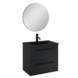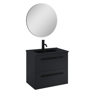 Badkamermeubelserie Stella is een eigentijds meubel. Door de mat zwarte wastafel, de zwarte grepen en ronde spiegel is heeft dit meubel een chique uitstraling voor een betaalbare prijs.