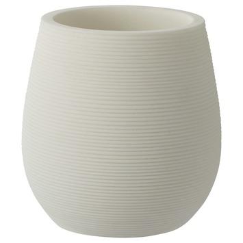 De geribbelde structuur geeft een robuustere uitstraling aan het geheel, bovendien zorgt het ervoor dat de beker minder makkelijk wegglijdt uit de handen. Het materiaal polystone is ijzersterk en kleurecht en vooral de vochtbestendigheid maakt deze houder uitermate geschikt voor de badkamer en het toilet.