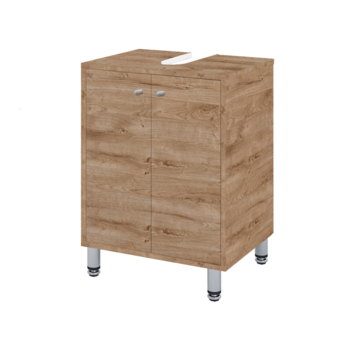 Deze compacte wastafelonderkast Oona van 50 cm in eikenkleur vormt een praktische basis voor elke badkamer waar ruimte telt. Het meubel biedt een rustige, verzorgde uitstraling en helpt je om spullen netjes uit het zicht op te bergen. Ideaal als je een kleine badkamer efficiënt wilt inrichten zonder concessies te doen aan gebruiksgemak. De kast is ontworpen om te combineren met een wastafel naar keuze, waardoor je zelf de uitstraling bepaalt. Dat maakt dit meubel geschikt voor starters, maar ook voor klussers die gericht werken aan een strak eindresultaat. Dankzij het compacte formaat past de onderkast makkelijk in kleinere badkamers of toiletruimtes. Achter de twee draaideuren ontstaat overzichtelijke opbergruimte voor dagelijkse toiletartikelen en schoonmaakspullen. De uitsparing in het bovenblad maakt het plaatsen van een wastafel eenvoudig en logisch. Zo staat alles snel op zijn plek en blijft de ruimte overzichtelijk. De Oona wastafelonderkast is te koop bij Karwei. Maak je badkamer compleet met deze onderkast en werk toe naar een nette, praktische inrichting.