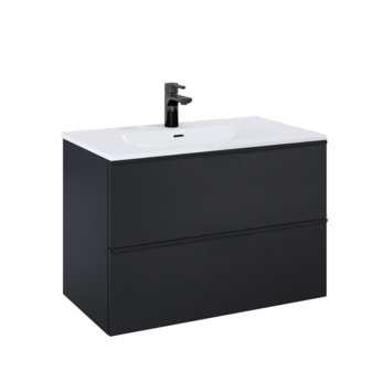 Het Atlantic badkamermeubel Aisa 80 cm in zwart geeft je badkamer een strakke, eigentijdse uitstraling en biedt veel opbergruimte. Dankzij de hogere lades heb je extra plek voor handdoeken, verzorgingsproducten en al je dagelijkse essentials. De twee softclose-lades sluiten geruisloos en houden alles netjes uit het zicht, terwijl de lange zwarte handgrepen over de volledige ladebreedte zorgen voor soepel openen en een strak front. Het geheel oogt modern en rustig door het zwarte meubel met bijpassende grepen. Kies zelf de bijpassende wastafel uit de Kyra- of Skappa-lijn en bepaal kleur en afwerking naar je eigen smaak. Maak je badkamer compleet met het Atlantic Aisa meubel en geniet van een overzichtelijke, stijlvolle ruimte.