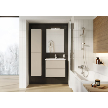 Naast de stijlvolle look is dit meubel ook erg functioneel. De twee ruime lades met softclose-systeem geven je genoeg plek om handdoeken, toiletartikelen en verzorgingsproducten netjes op te bergen. De lades bewegen soepel en sluiten geruisloos, waardoor het meubel niet alleen netjes oogt, maar ook aangenaam in gebruik is. Dankzij de compacte afmetingen past dit meubel perfect in een kleinere badkamer, maar ook als elegante toevoeging in een grotere ruimte.
