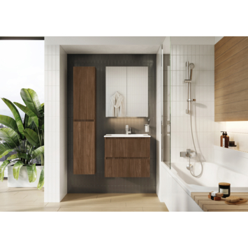 Praktisch in gebruik: de twee ruime softclose-lades bieden voldoende ruimte voor handdoeken, toiletartikelen en verzorgingsproducten. De lades sluiten geruisloos en openen soepel, zodat alles netjes blijft en het gebruik prettig is. Het compacte formaat maakt het meubel geschikt voor kleinere badkamers, maar ook als verfijnde aanvulling in een grotere ruimte.