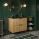 Het meubel is gemaakt van eik en heeft afmetingen van 80 x 45,2 x 63,5 cm. Kraan en wastafel zijn niet inbegrepen, zodat je zelf een combinatie kunt maken die perfect bij jouw smaak past. Het onderhoud is eenvoudig: een zachte doek en milde zeep zijn voldoende, mits je het hout goed droogt na gebruik.