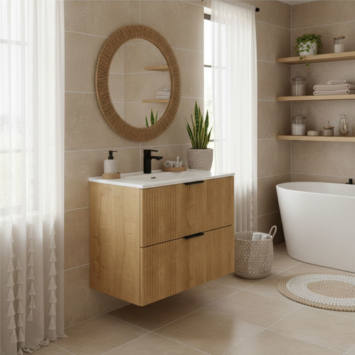 De twee lades zijn voorzien van softclose. Je trekt ze moeiteloos open en sluit ze zacht en geruisloos. Zo houd je de rustige sfeer in je badkamer ook tijdens het gebruik. De breedte van 80 cm geeft je extra opbergruimte, zonder dat het meubel log oogt. Handdoeken, verzorgingsproducten en accessoires krijgen allemaal een vaste plek, waardoor je badkamer overzichtelijk blijft.