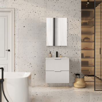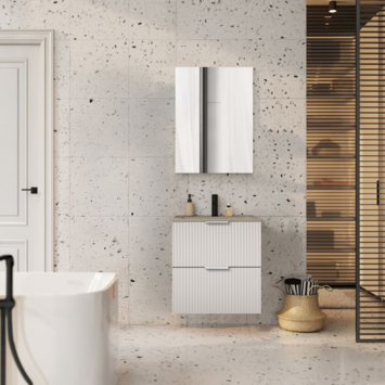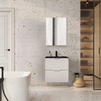 Met afmetingen van 60 x 45,2 x 63,5 cm past het meubel moeiteloos in kleinere badkamers of toiletruimtes. De brede lades houden je spullen overzichtelijk, zodat je snel vindt wat je nodig hebt en je badkamer netjes blijft.