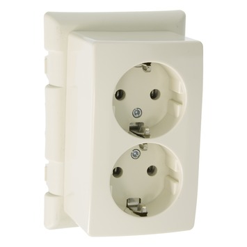 Attema dubbele stopcontact met randaarde crème, inclusief montageplaat, voor universele lasdoos.