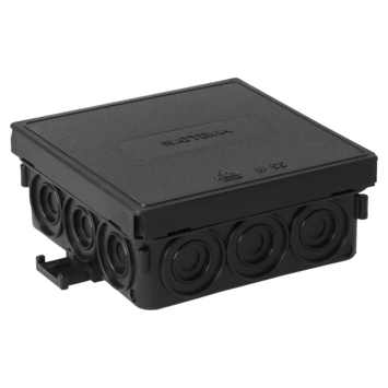 Attema kabeldoos IP55 voor het op wand of plafond monteren van kabels. Deze zwarte kabeldoos heeft 12 breekpoorten.