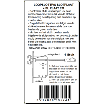 Binnendeur slot, met RVS (look) voorplaat. Dit slot heeft alleen een dagschoot. De dagschoot is makkelijk om te draaien. De maten van het slot komen overeen met het meest gebruikte slot..