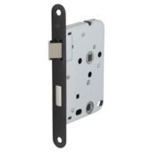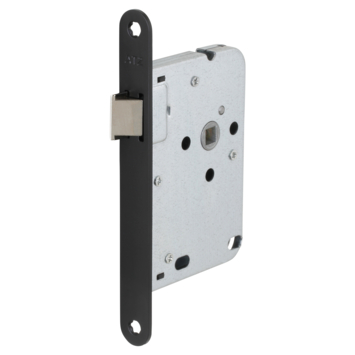 Binnendeur slot , met zwarte voorplaat. Dit slot heeft alleen een dagschoot. De dagschoot is makkelijk om te draaien. De maten van het slot komen overeen met het meest gebruikte slot.