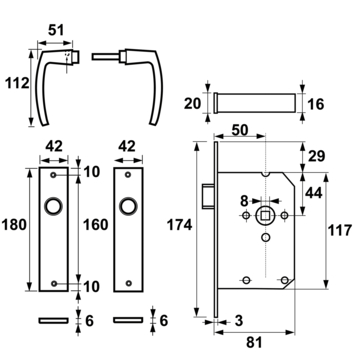 - Standaard toepasbaar op deuren van 38 tot 42 mm dik