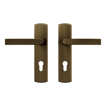 Binnendeurbeslag set Curve Klik met krukken Blok en schilden PC72 in de kleur brons