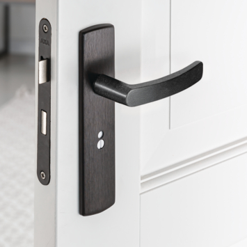 AXA Curve Klik Binnendeurset in een zwart geslepen aluminium uitvoering is geschikt voor binnendeuren van 38 tot 42 mm dik. De schilden en deurkrukken hebben een licht gebogen vorm en hebben geen zichtbare bevestigingspunten. Door de geslepen matte uitvoering zijn deze minder krasgevoelig en laten geen zichtbare vingerafdrukken achter. Deze deurkrukset is geschikt voor afsluitbare WC- en badkamerdeuren met een slot van hart op hart 63mm. De deurkrukset wordt geleverd inclusief bevestigingsmaterialen.
