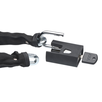 Het AXA kettingslot clinch 85*6 black is een kwalitatief hoogwaardig kettingslot, dat bij uitstek geschikt is om de fiets voor kortere of middellange tijd te parkeren. Het slot is ook prima als tweede slot te gebruiken. De schakels van het Clinch-slot zijn 6mm dik en gemaakt van gehard staal. Lastig door te knippen dus. Bij het kettingslot hoort een los hangslot. Dat maakt de Clinch heel gemakkelijk in gebruik. Een stevige polyester hoes om de ketting voorkomt dat het fietsframe beschadigt. Het zwarte slot is 85cm lang en ook verkrijgbaar in andere kleuren.