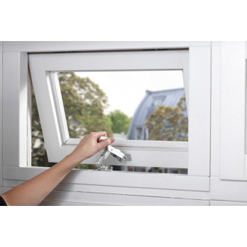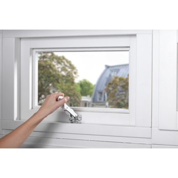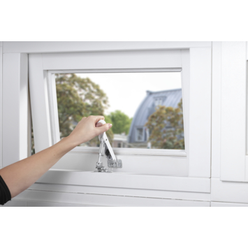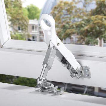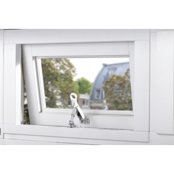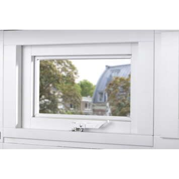 De Axa raamuitzetter combi SKG2 RVS buitendraaiend wit is geschikt voor naar buiten draaiende klepramen met een minimale raamhoogte van 16,5cm. De raamuitzetter is gemaakt van wit gelakt RVS en heeft naast het Politiekeurmerk Veilig Wonen een SKG2 keurmerk. Producten met het SKG2 keurmerk voorkomen zelfstandig het binnendringen van inbrekers met ten minste 3 minuten, of in combinatie met andere inbraakwerende voorzieningen met ten minste 5 minuten. Het benodigde bevestigingsmateriaal is meegeleverd. Met deze raamuitzetter kun je het raam niet alleen afsluiten maar kun je het raam ook op iedere gewenste (ventilatie)stand zetten. Door de meegeleverde montagehandleiding en boormal is ook het monteren erg gemakkelijk.