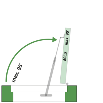 De tele-uitzetter 50 EX heeft traploze standen voor ventilatie.