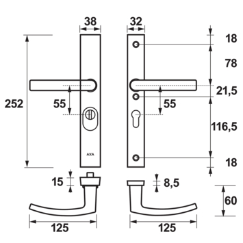 AXA veiligheidsbeslag Edge achterdeur aluminium smal schild met SKG 3-sterren 55 mm