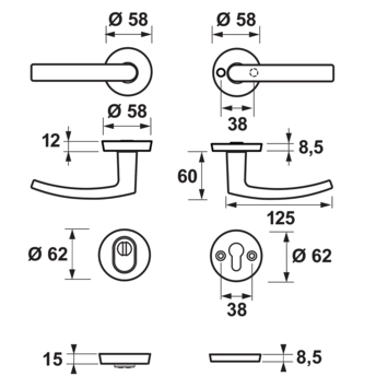 - Accessoires bijgeleverd:Schroeven, Deurschilden, Deurkrukken