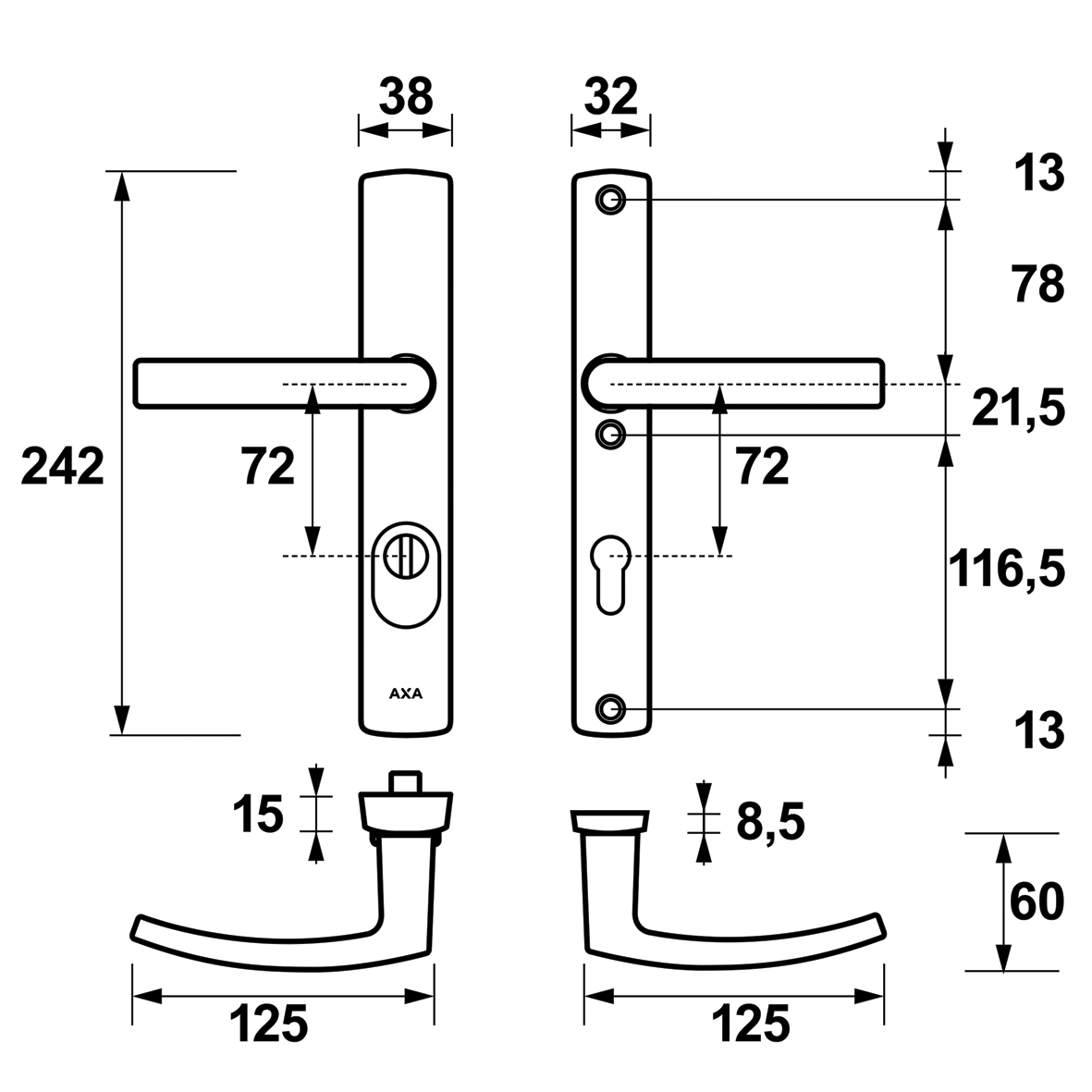 AXA Veiligheidsbeslag Smal met kerntrekbeveiliging SKG-3 sterren achterdeur 72 mm