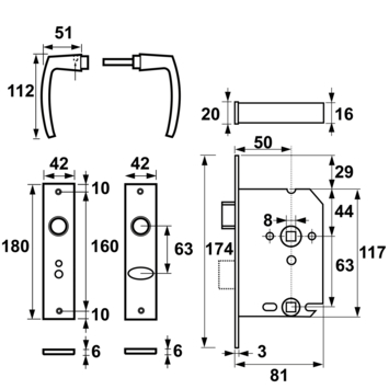 - solide krukstiftmechanisme inclusief sluitplaat, bevestigingsmiddelen en witte voorplaat