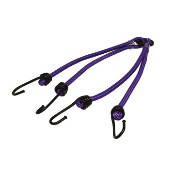 De bagagebinder met 4 haken bestaat uit 2 paarse linten van 60 centimeter lang met 4 metalen haken aan de uiteinden van de linten. De bagagebinder is ideaal om spullen zoals een sporttas of krat, op de bagagedrager of op een bakkersrek vast te zetten.